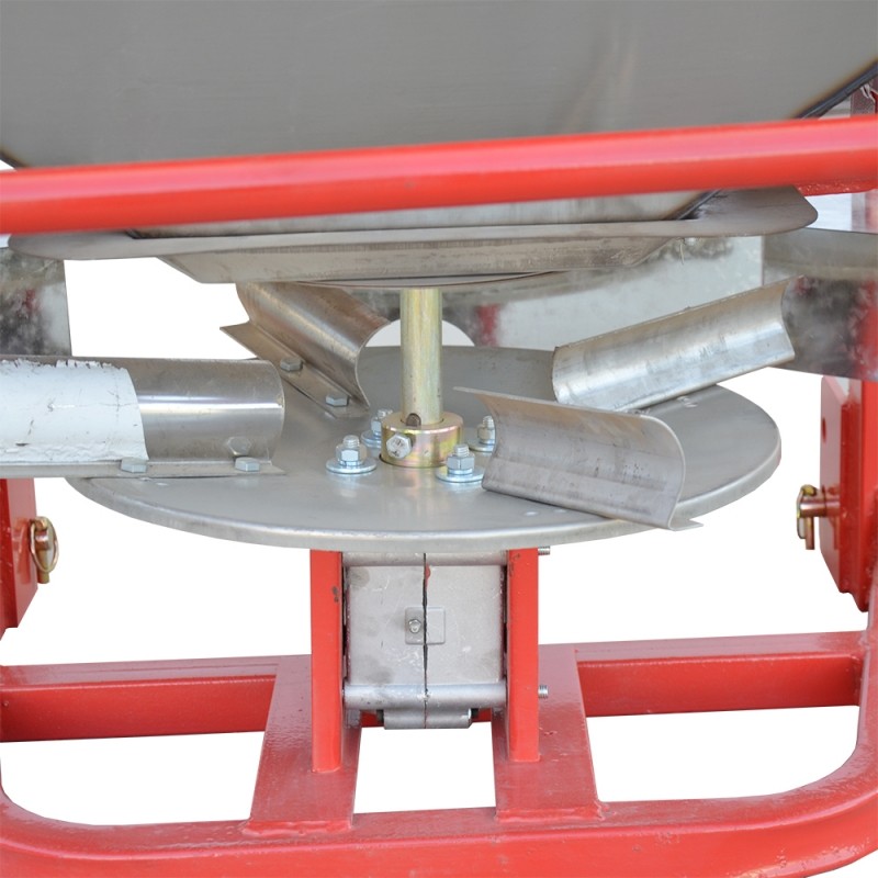 ثم تعمل قوة الطرد المركزي على تشتيت الأسمدة بالتساوي، مع بوابات آلة توزيع الأسمدة التي تتحكم في كثافة النشر ومدى انتشاره حسب الحاجة.
