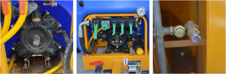تعمل المضخة على ضغط المبيد الحشري، والذي يتدفق بعد ذلك عبر الخراطيم إلى فوهات الرش. تعمل هذه الفوهات على تفتيت المبيد الحشري إلى قطرات دقيقة، مما يضمن أن يغطي بخاخ البستان المتتبع كل جزء من أشجار الفاكهة بالتساوي، من الفروع إلى الأوراق.